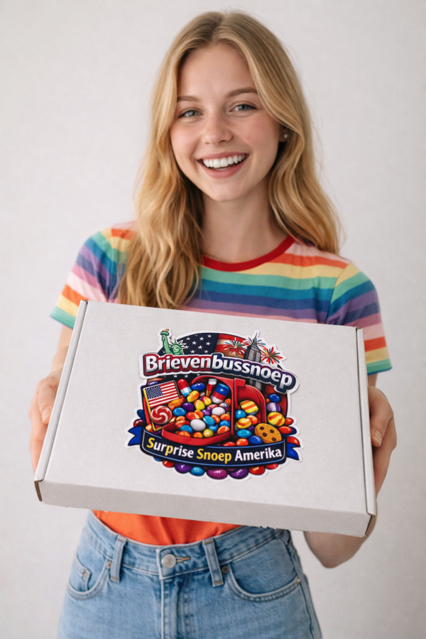 Brievenbus snoep in formaat ruim A5, mix van lekker A-merk Amerikaans snoep om heerlijk van te genieten. Een fantastisch XL cadeau om iemand of jezelf te verassen.